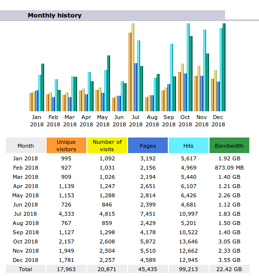 2018 Aylık Ziyaretçi Sayıları